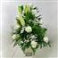 描述: 白玫瑰和百合12枝组合、样式如图。