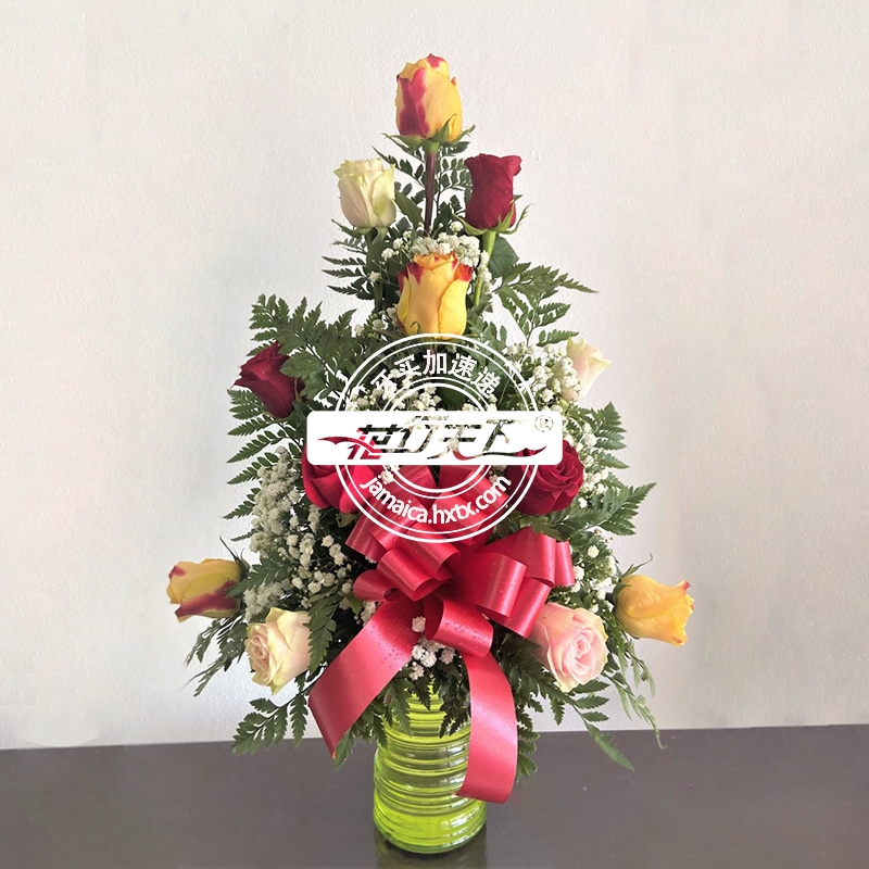 牙买加鲜花-12支多色玫瑰